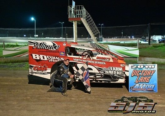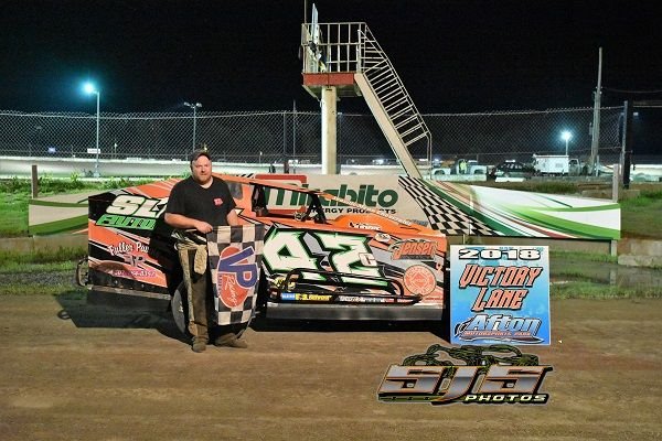 Click on image for larger version.Afton, NY — A lightning quick race track with incredible bite greeted the racers at the Afton Motorsports Park on Friday night. When the quickly paced three hour show had ended a trio of new faces found themselves in victory lane. While three familiar faces also found themselves in victory lane on D & H Logging Night at the track.